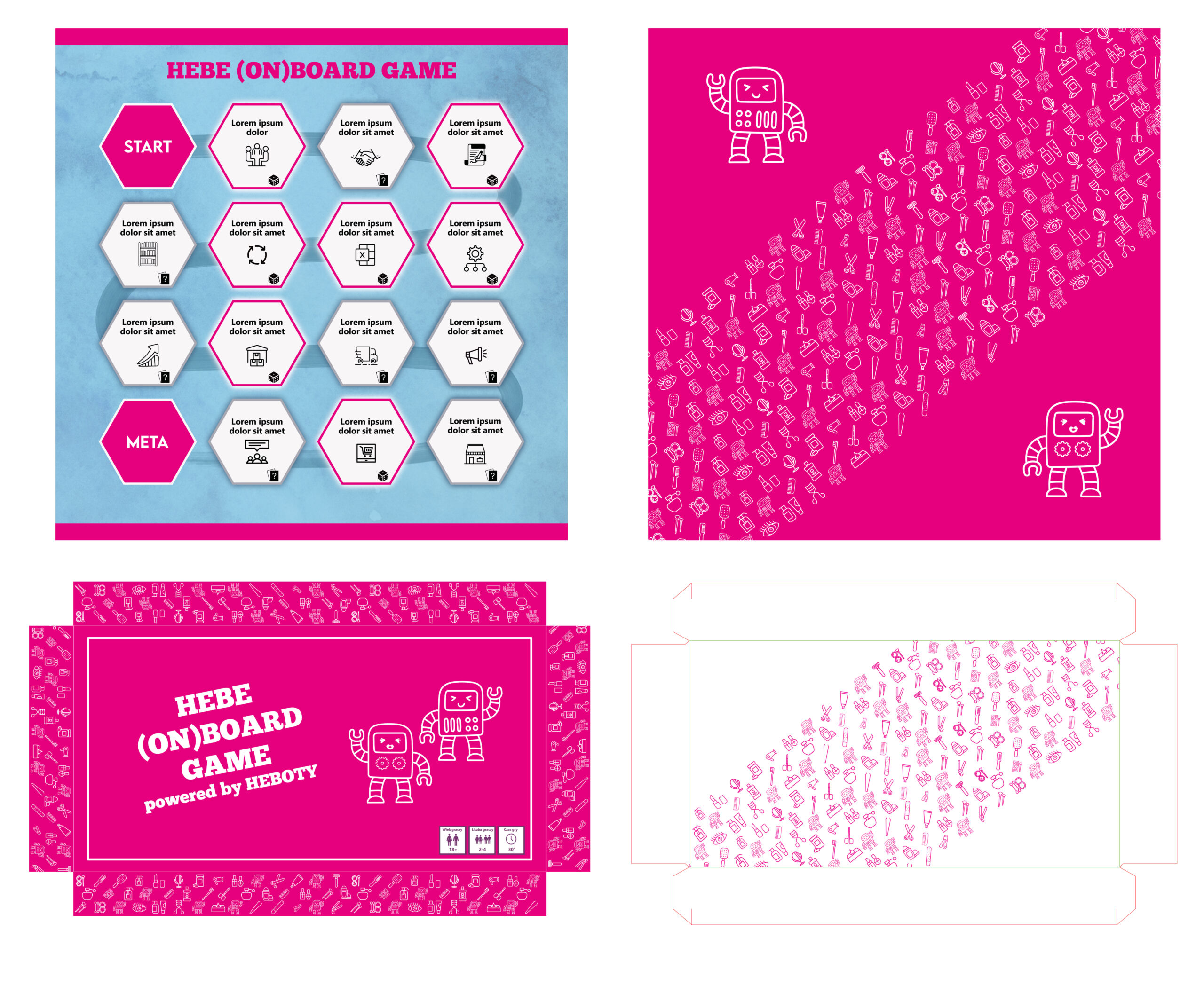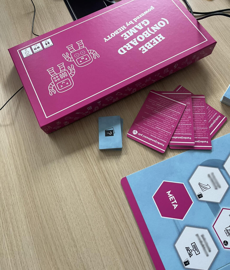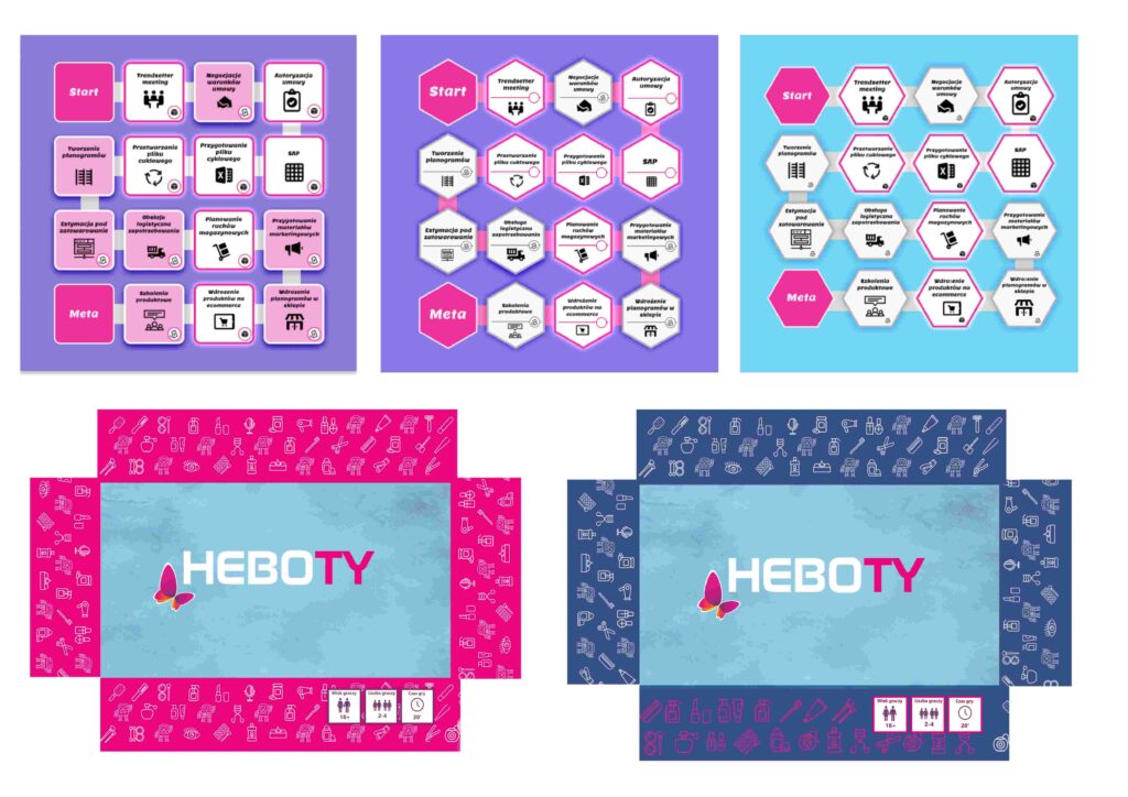 Using the selected colour palette and icons used in the company’s internal communication, I prepared the design for the game box and logo.