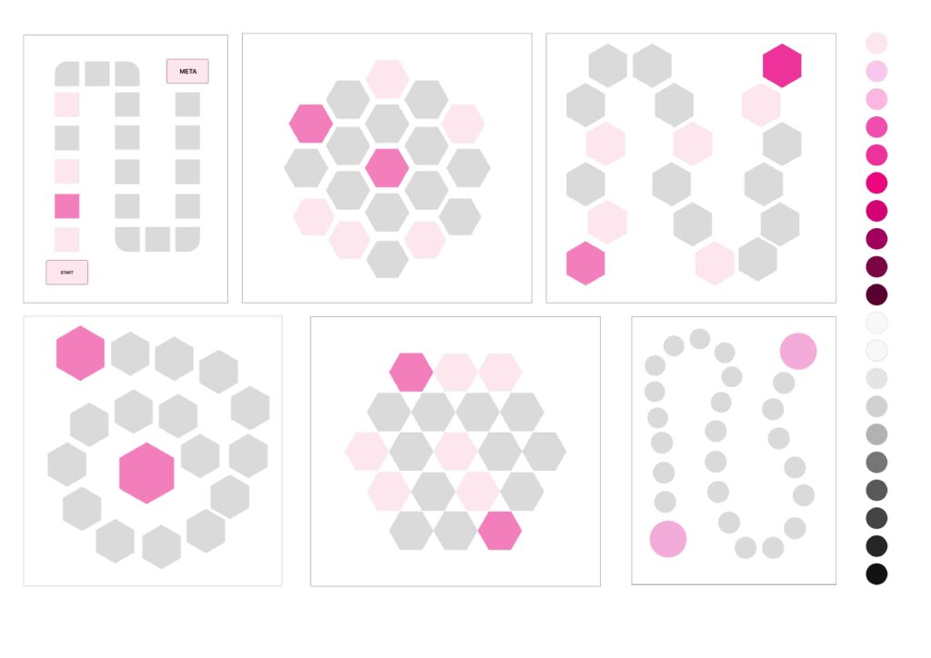 Based on the research and brief, I prepared the concept of the basic board layout, and tested different shapes for the game board tiles.