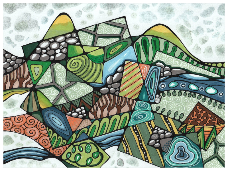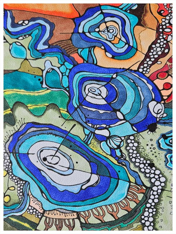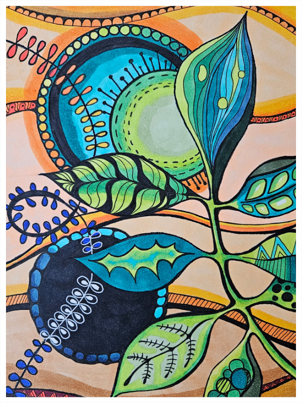 I create unique artworks using gel monotype, markers, ink, and fineliner techniques. I draw inspiration from nature and geometry, and each piece is created through careful observation of details and experimentation with form. Gelli Plate Monotype Marker and Fineliner Illustrations Ink and Fineliner Drawings