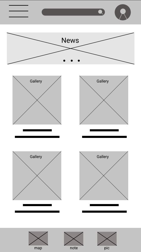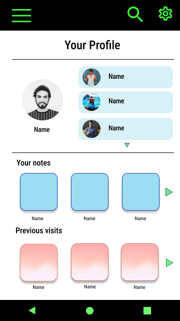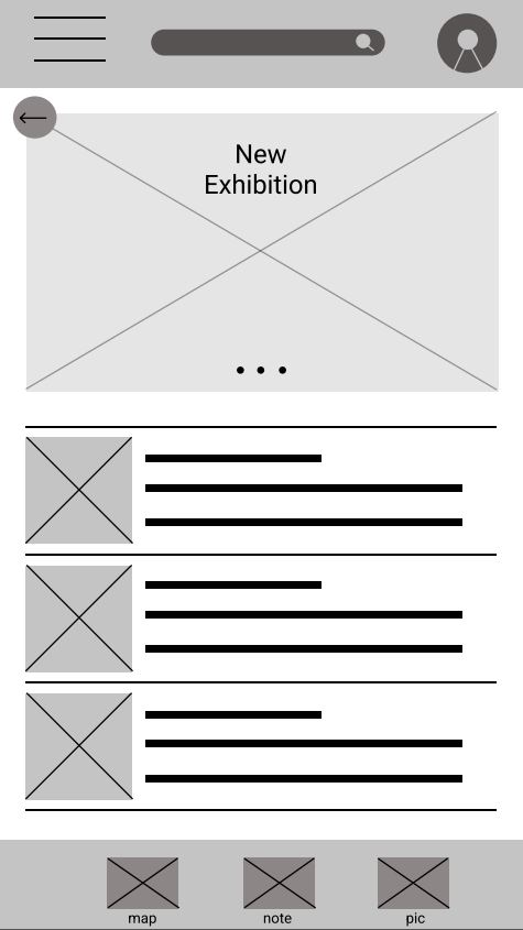 Taking the time to draft iterations of each screen of the application on paper ensured that the elements that made it to digital wireframes would be well-suited to address user’s pain points. For the home screen, I prioritized an explore and search option as well an easy access to profile.