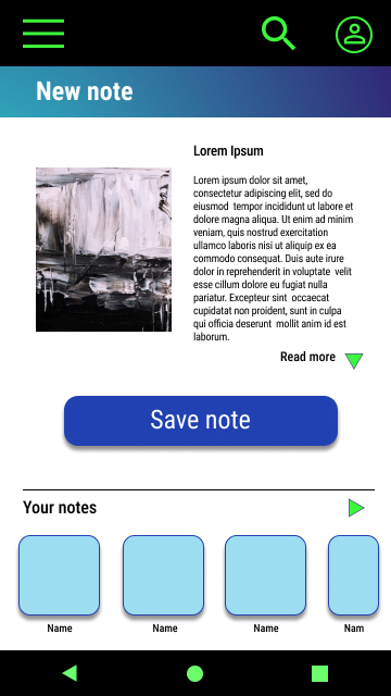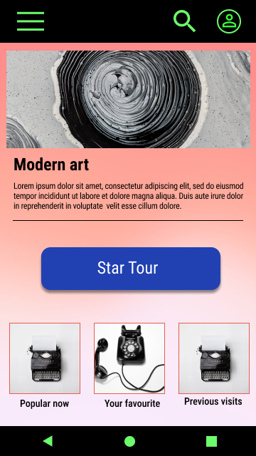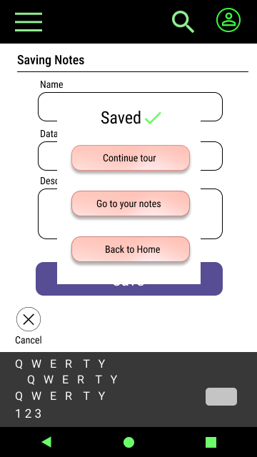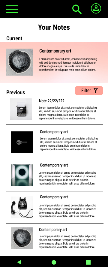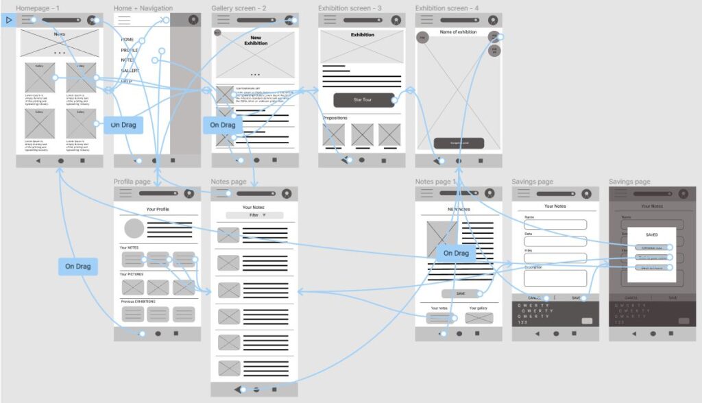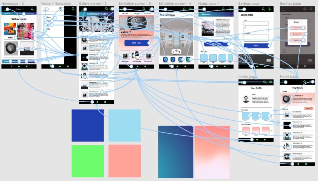To create a high-fidelity prototype I connected all of the screens involved in the primary user flow of making notes during a virtual tour in an art gallery.